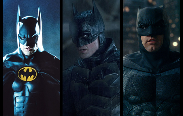 WB. Discoveryn lepakkomiesdilemma. Kolme Yön ritaria vasemmalta oikealle: Michael Keaton, Robert Pattinson ja Ben Affleck.